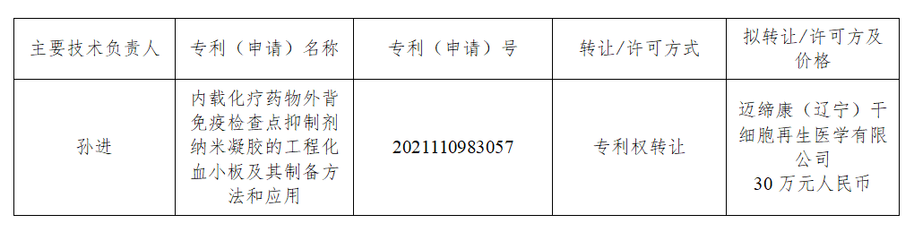 根据沈阳药科大学专利转让/许可审批制度,现将如下项目中专利(申请)权转让、专利实施许可的相关信息进行公示,公示期十五天(2026年1月27日-2026年2月10日),如有任何异议,请向沈阳药科大学科研处反映。