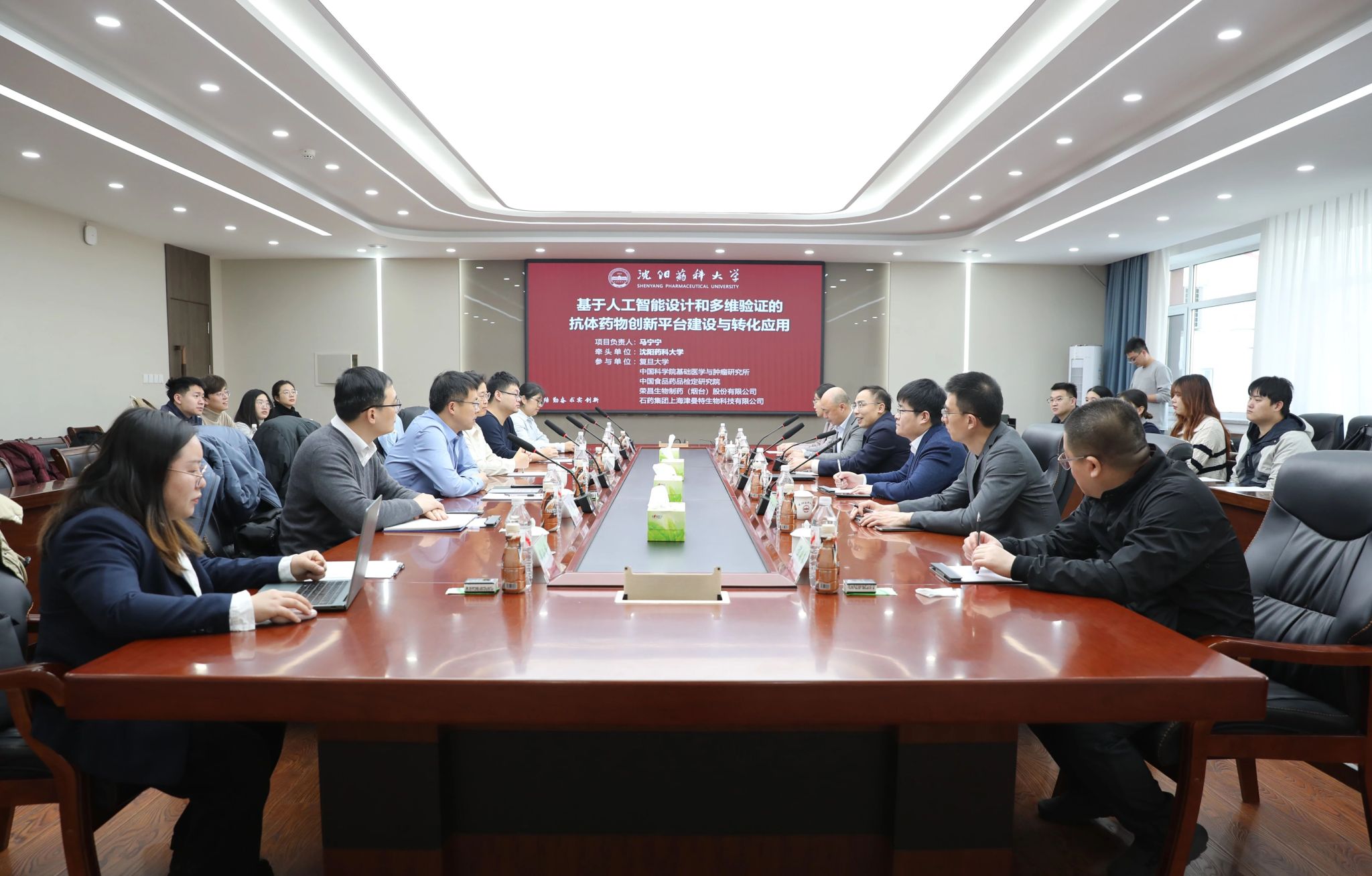 12月12日,国家重点研发计划“基于人工智能设计和多维验证的抗体药物创新平台建设与转化应用”项目交流会在沈阳主校区图书馆第二学术报告厅召开。我校党委副书记、校长齐炼文出席交流会并致辞。复旦大学教授曹志伟、中国科学院杭州医学研究所研究员郭鹏、荣昌生物制药(烟台)股份有限公司高级副总裁李元浩、上海津曼特生物制药有限公司首席执行官安利平、中国食品药品检定研究院研究员李萌等课题负责人、技术骨干,我校无涯创新学院负责人及学生代表参加交流会。项目负责人、无涯创新学院教授马宁宁主持交流会。交流会线上线下同步进行。