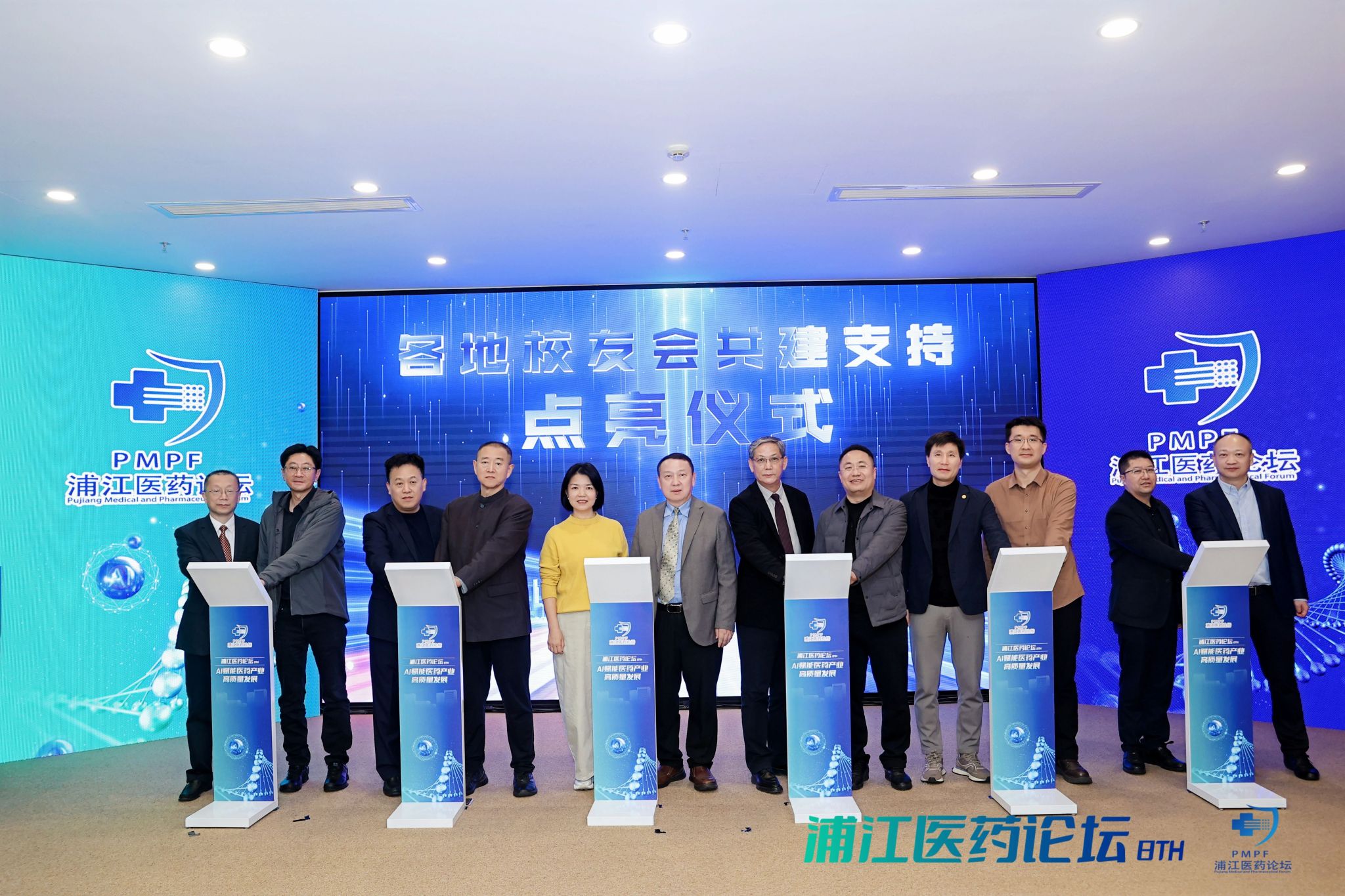 上海宣泰医药科技股份有限公司等12家闵行区校友企业代表共同启动“首批园区校友企业共建支持”点亮环节;江苏、深圳、浙江、安徽、《无涯》杂志、广东、天津、江西、湖北、珠海、无锡及苏州等地校友会代表共同启动“校友会共建支持”点亮环节。