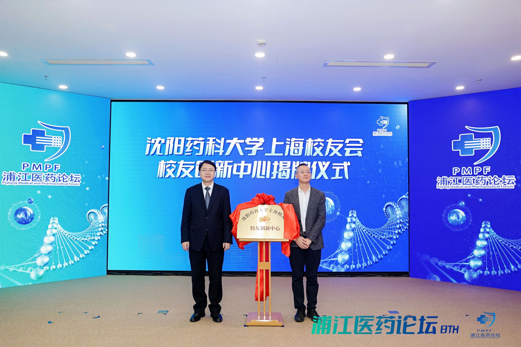开幕仪式上,高明宇、陈浩共同为“沈阳药科大学上海校友会校友创新中心”揭牌。随后,现场举行了两场点亮仪式,见证校友企业与创新中心的创新联动、双向托举。